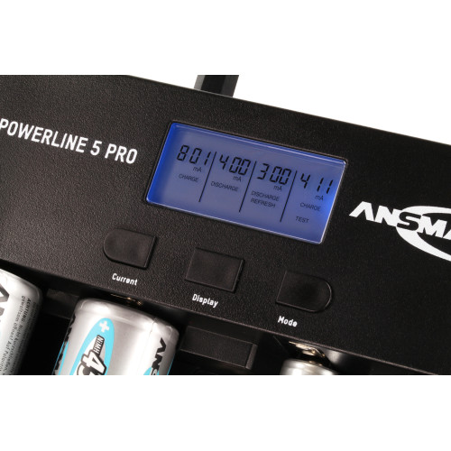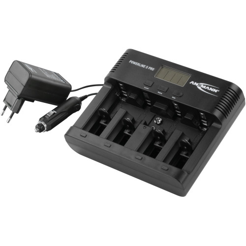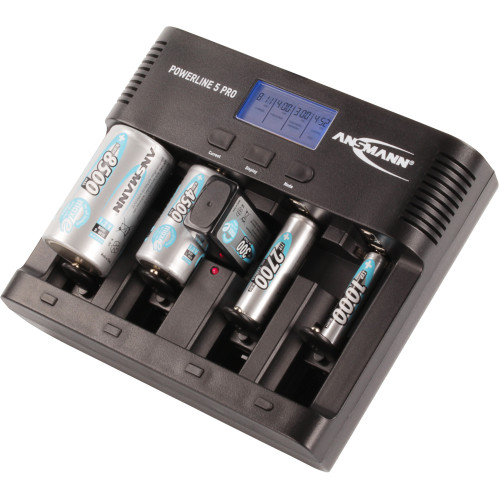 De Ansmann Powerline 5 Pro batterijlader is geschikt voor 1-4 AAA, AA, C of D en 1 9V blok.